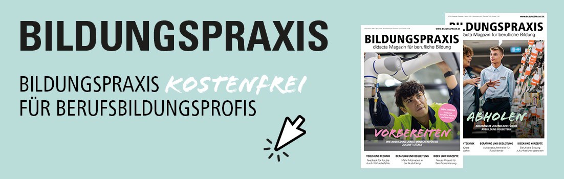 Ja, ich bin in der Berufsbildung tätig und möchte Bildungspraxis - didacta Magazin für Berufsbildung regelmäßig kostenlos erhalten.